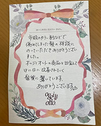 サロンで受け取った“ありがとうカード” にオッジィオットやサロン、スタイリストの方へのメッセージを綴ってください。